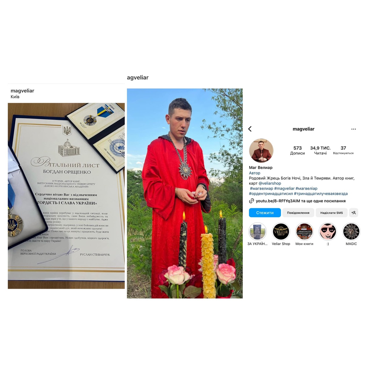 Спикер Верховной Рады Украины Руслан Стефанчук наградил таролога мага Велиара (настоящее имя - Богдан Орищенко) знаком отличия "Гордость и слава Украины".