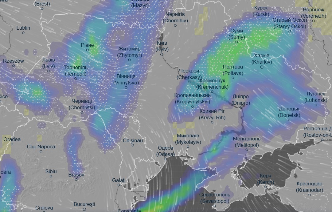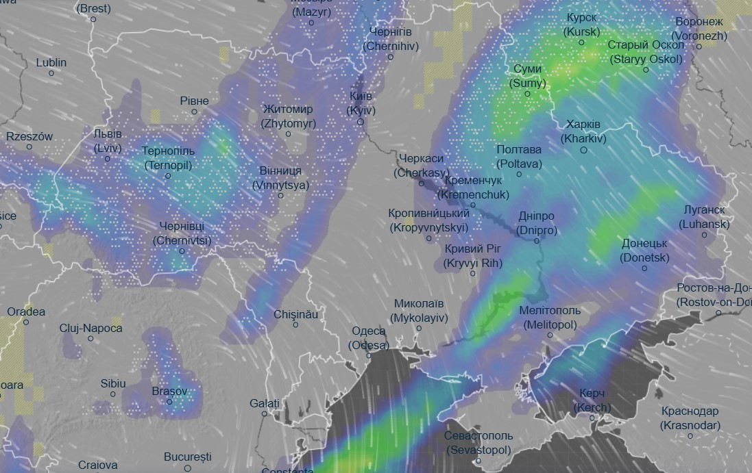 Об этом свидетельствуют данные метеоресурса Ventusky.