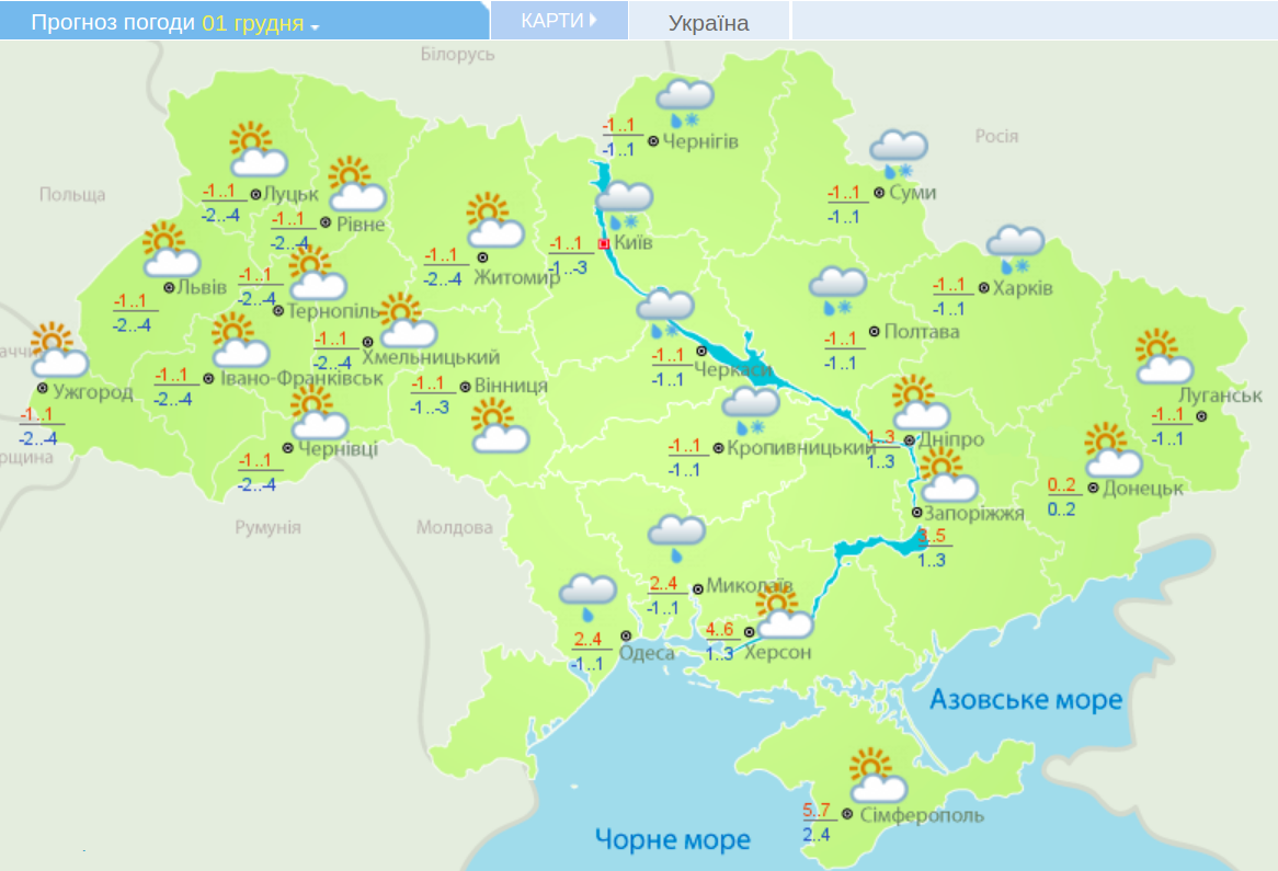 Карта погоды 1 декабря: