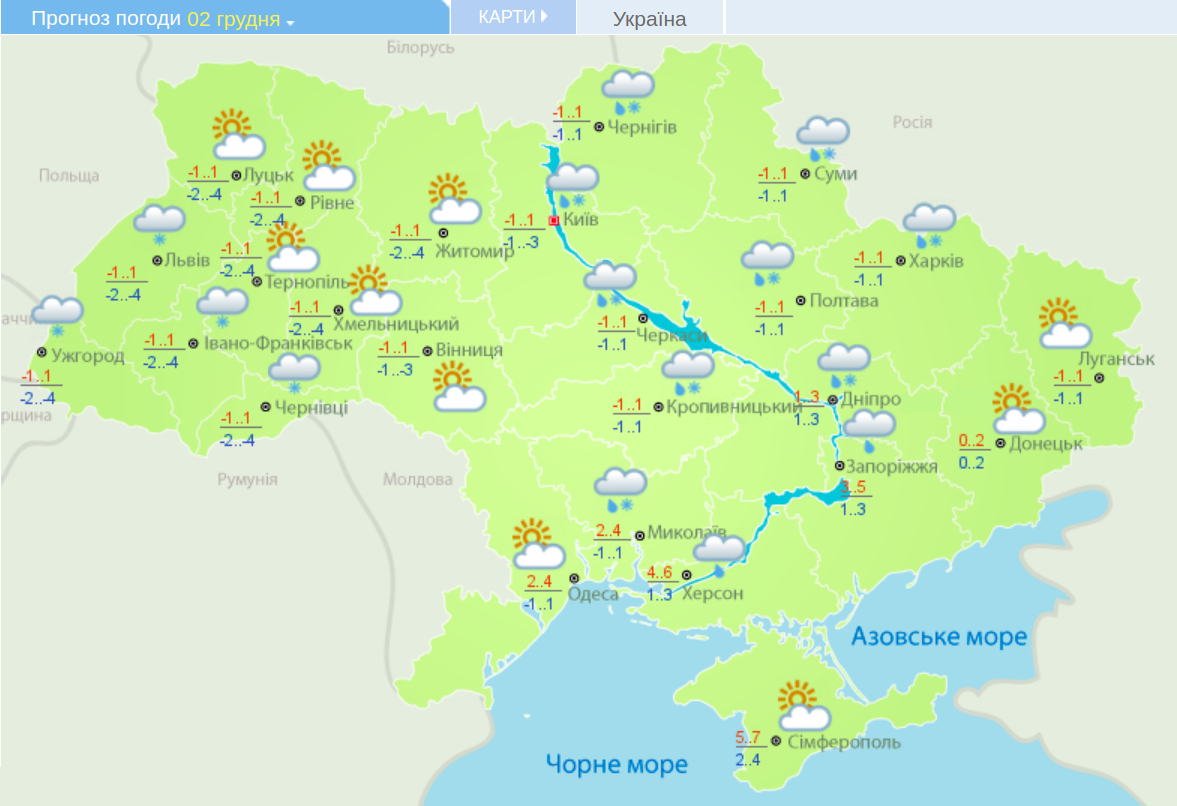 Карта погоды 2 декабря: