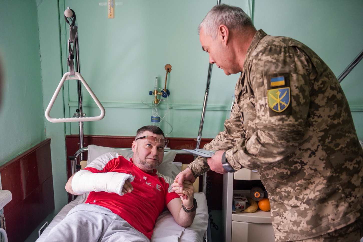 Он пообщался с ранеными бойцами относительно того, как они получили травмы, про течение лечения и в чем есть проблемы сейчас. Некоторые вопросы военных решили уже во время беседы.
