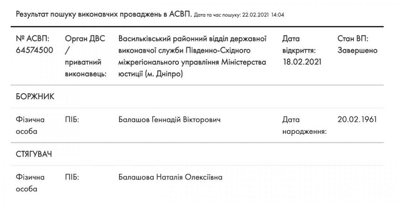 "Против Балашова открыто исполнительное производство по неуплате им алиментов. А закон предусматривает ограничение возможности выезда из Украины таким лицам - до уплаты ими долга. Таким образом, Балашов попал в статус невыездного", - говорится в сообщении.