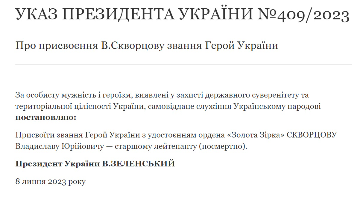 Награда нашла героя - президент Украины Владимир Зеленский подписал соответствующий указ.