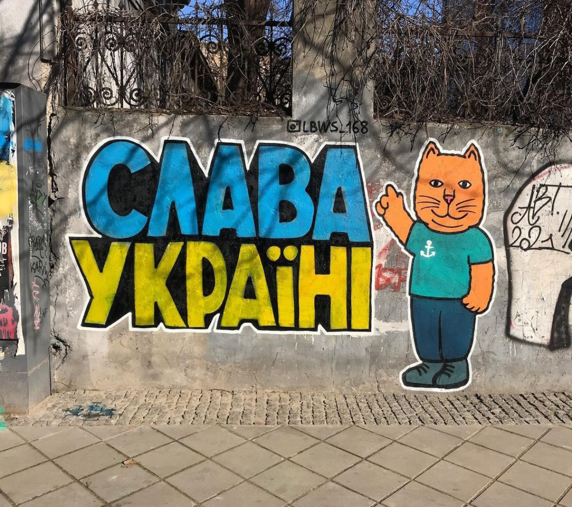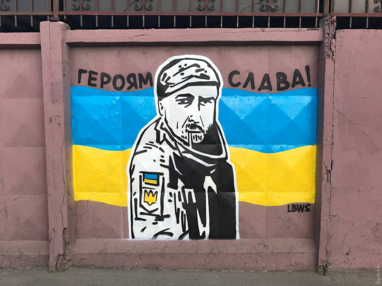 В исторической части Одессы появился рисунок с лицом Героя, которого в упор расстреляли российские оккупанты и последними словами которого были "Слава Украине".