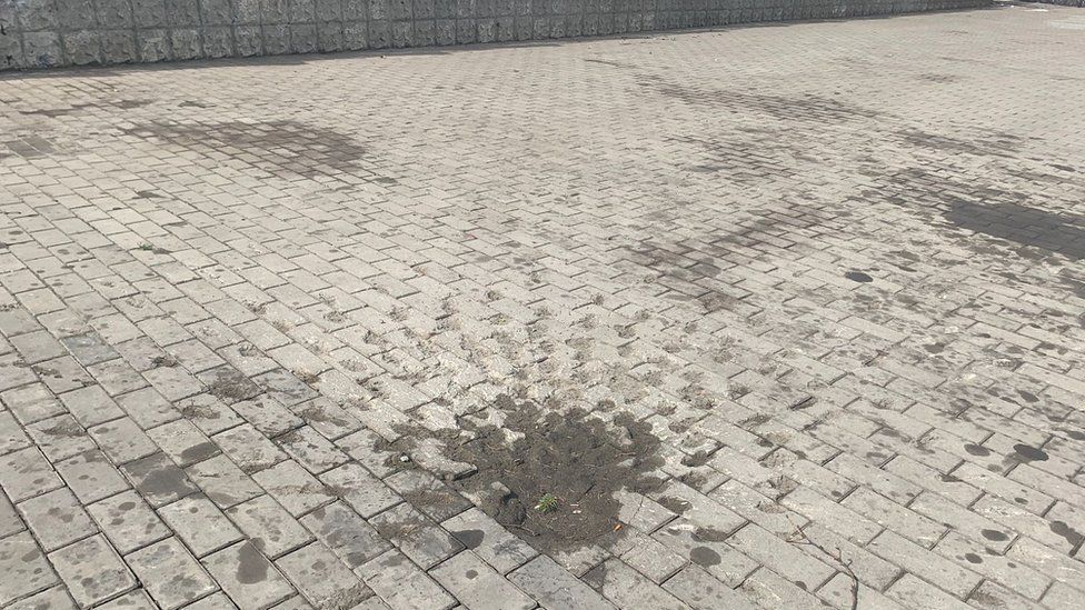 Например, в стене здания возле вокзала образовалась большая дырка.