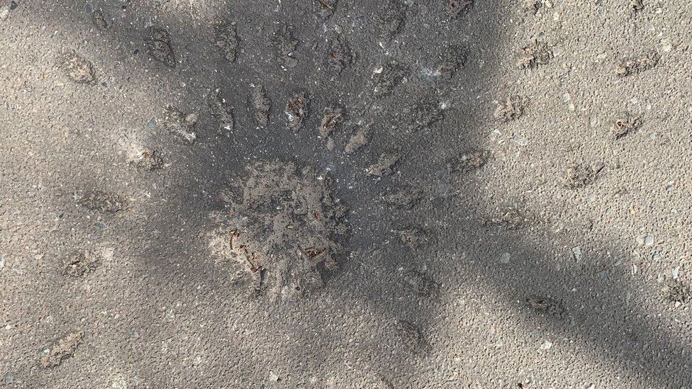 В результате взрыва осколки разлетаются вокруг места основного удара ракеты и оставляют повреждения в местах взрыва каждого из них.