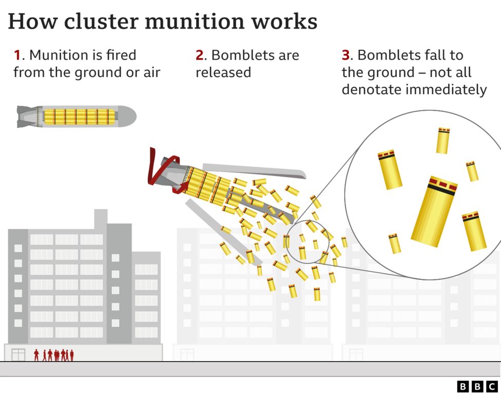 На месте удара были обнаружены следы элементов, которыми начинены кассетные боеприпасы.