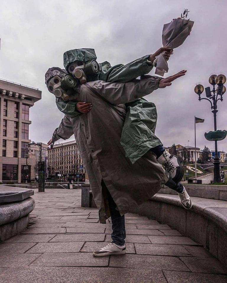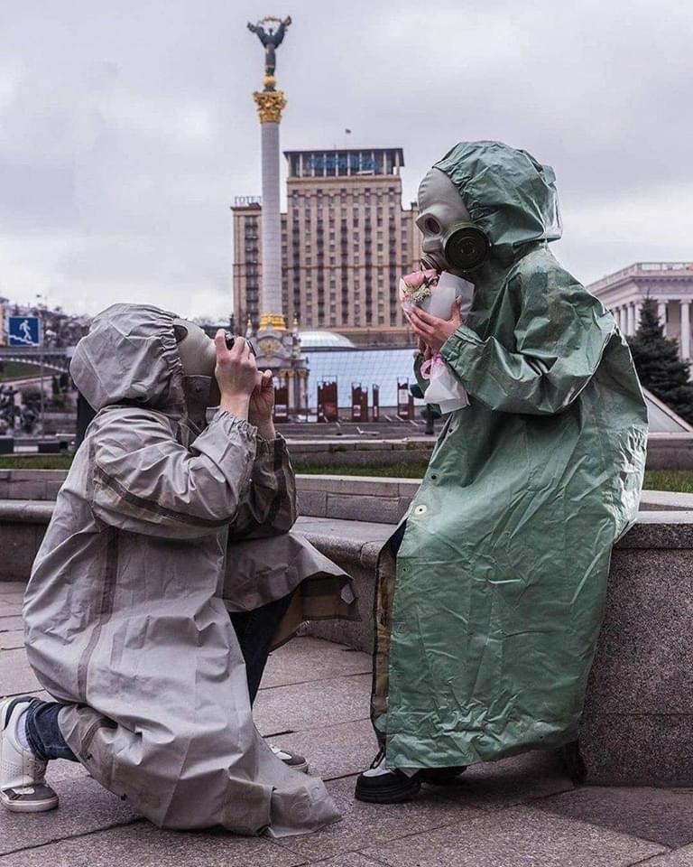 "Киевская романтика этой весны. Главное, не перепутать человека внутри костюма", - подписали фото в Telegram-канале CORONAVIRUS|КОРОНАВИРУС|ЭКСТРЕННО.