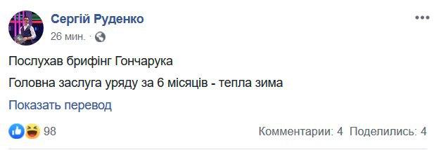 По словам Гончарука,энергетическая система не работала в полном объеме из-за теплой погоды. Также глава правительства выразил надежду, что некоторые пользователи получат платежки "на 40% меньше, чем обычно".