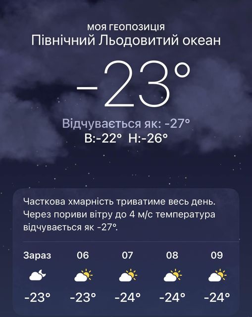 "РЭБ. Главный туроператор Украины", - написал журналист и военный, добавив скриншот программы прогноза погоды. Геолокация показала, что Казарин находится в Северном Ледовитом океане.