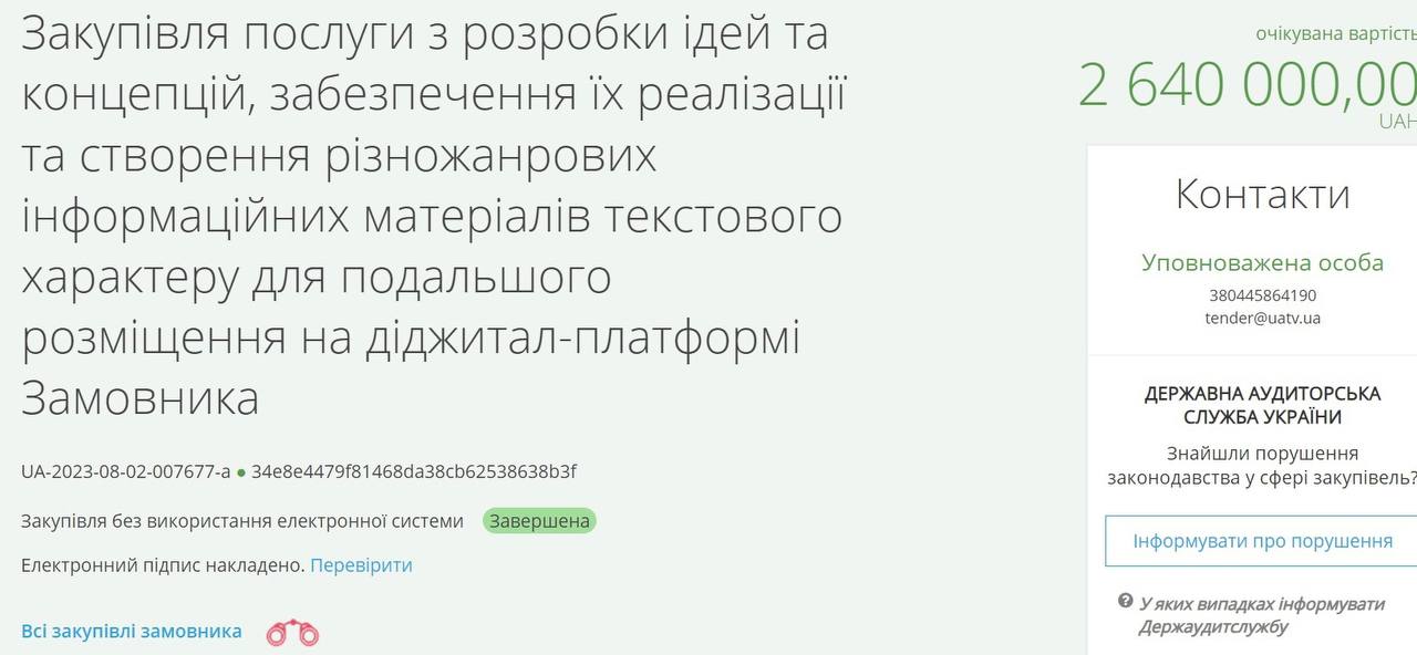 "Закупка услуги по разработке идей и концепций, обеспечению их реализации и созданию разножанровых информационных материалов текстового характера для дальнейшего размещения на диджитал-платформе Заказчика", - говорится в тендерной документации.