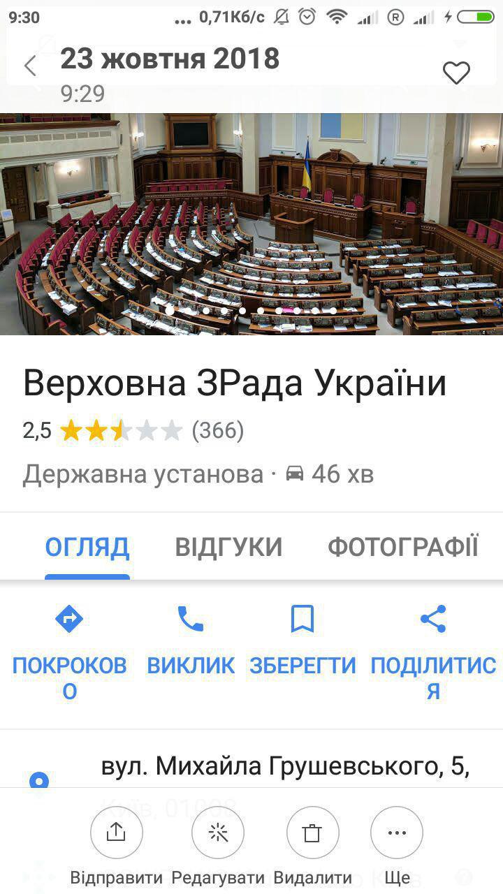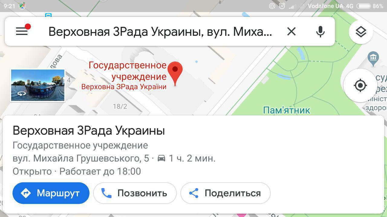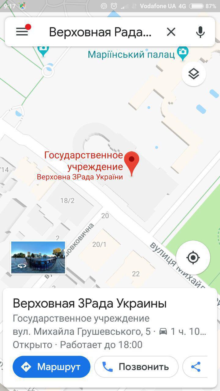 В сети появились скриншоты Google карт с новым названием парламента - Верховная "зРада".