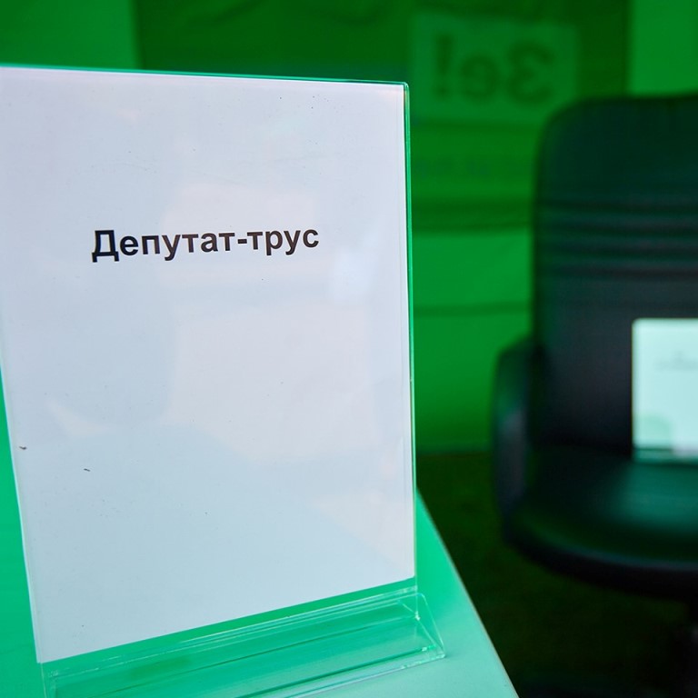 Отдельный стенд на фестивале был посвящен кандидатам, которые боятся признаваться избирателям, что являются действующими народными депутатами.