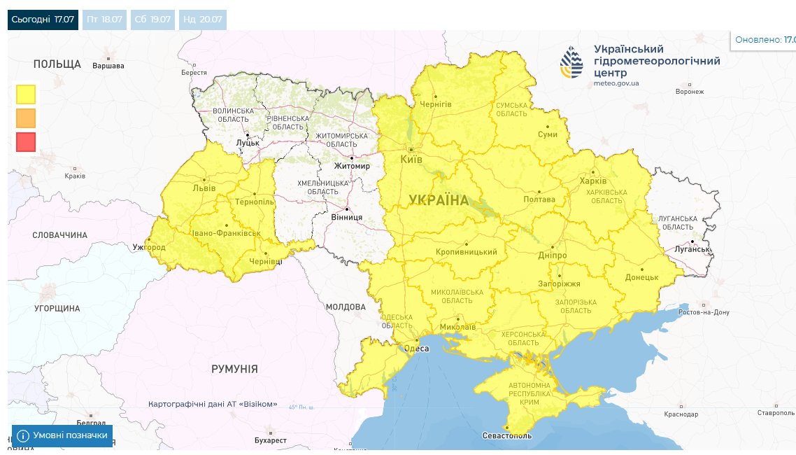 В четверг, 17 июля, в отдельных областях Украины прогнозируется резкое ухудшение погодных условий - пройдут сильные дожди с грозами, местами с градом и штормовым усилением ветра.
