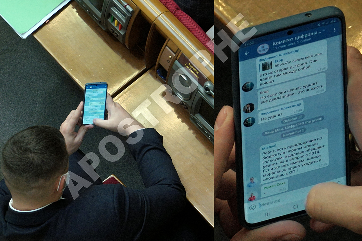 Во время заседания Верховной Рады 5 ноября депутатов заметили за необычной перепиской, в которой они обсуждали возможный переход в оппозицию.