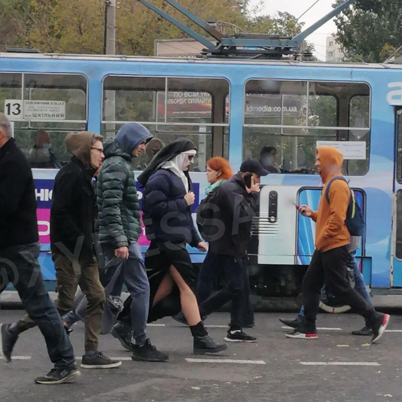 В Одессе заметили женщину в костюме монашки, которая, среди белого дня, дефилировала в таком виде по городу.