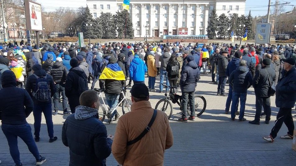 20 марта в Херсоне и Каховке тысячи горожан вышли на мирные митинги в поддержку Украины и против оккупации украинских городов российскими войсками.