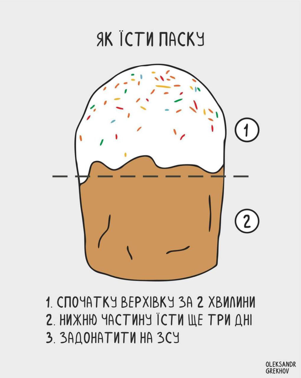 Отдельные мемы были посвящены тому, как украинцы зачастую "расправляются" с праздничной паской, съедая сразу же часть с глазурью.