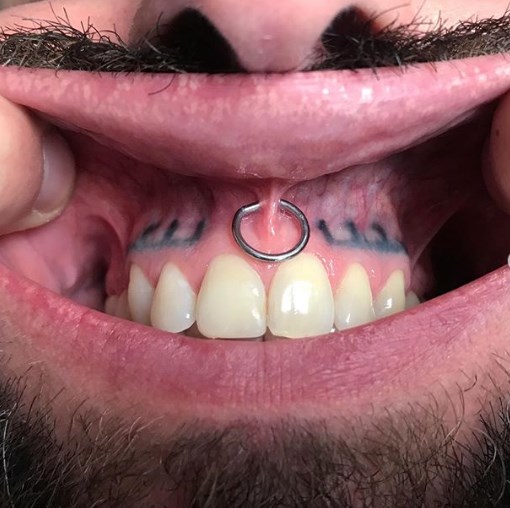 Он делает тату, которые сможет увидеть лишь стоматолог. Потому что рисунки размещены в полости рта.