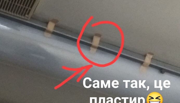 Укрзализныця отличилась своими "креативными" работниками. Один из пассажиров поезда заметил у себя лампу над дверью, которая прикреплена к потолку медицинским пластырем.