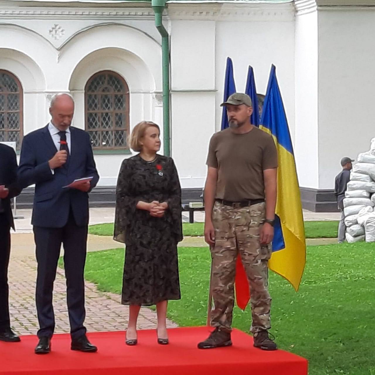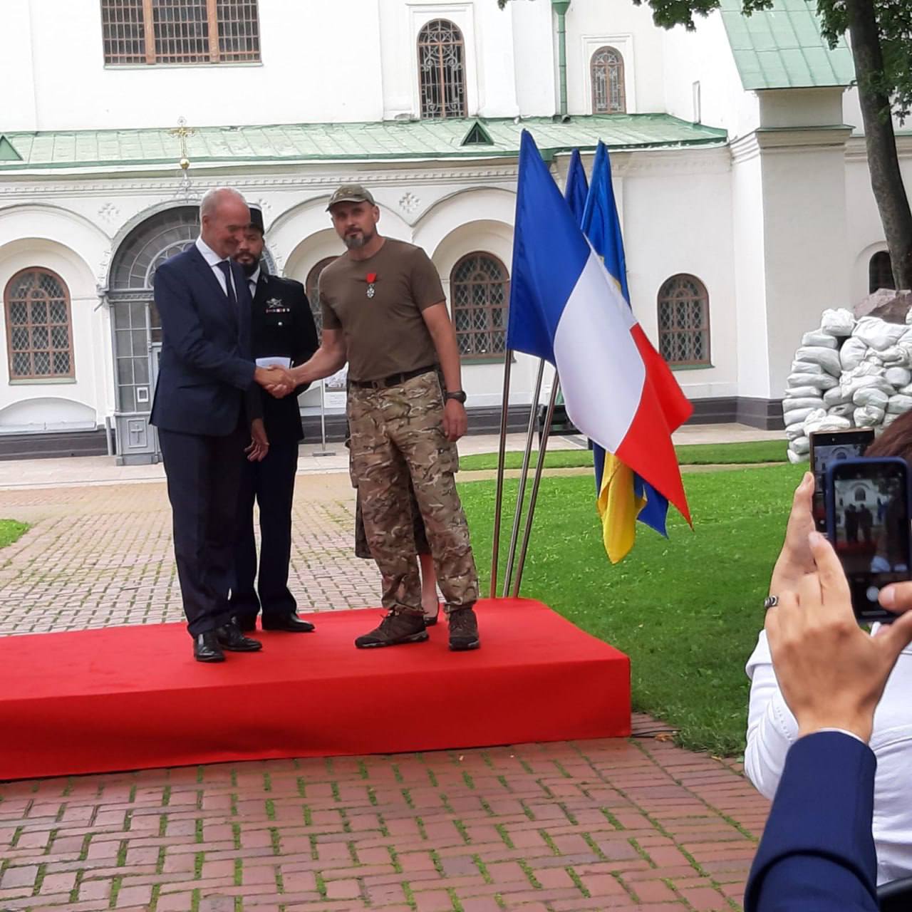 В пятницу, 14 июля, в саду Софийского собора в Киеве украинского режиссера и военнослужащего Олега Сенцова, который вчера отметил свое 47-летие, и писательницу Оксану Забужко наградили Орденом Почетного легиона, являющейся высшей наградой во Франции, которую присуждает президент республики за военные или гражданские заслуги