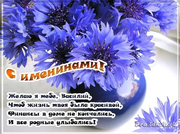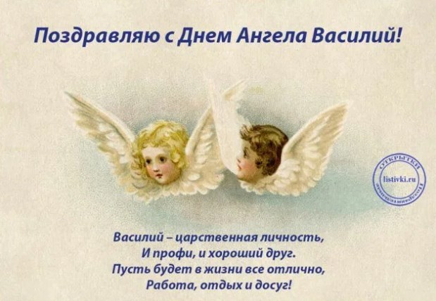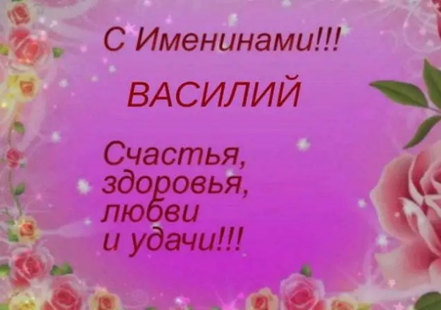 Дорогой Василий, знаешь ли ты, что твое имя происходит от слова, значение которого - "царь"? Так желаю тебе быть всегда царем в своей жизни, карьере и отношениях. Пусть все складывается воистину по-царски, а везение не обходит тебя стороной. С Днем ангела!