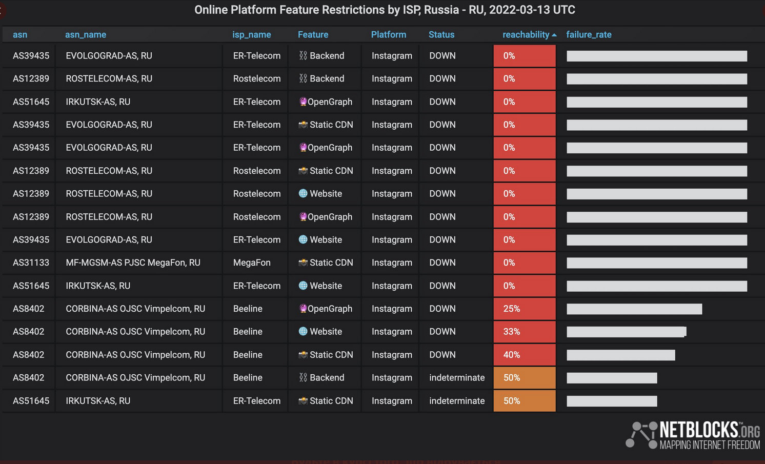 Так, в Netblocks подтверждают, что данные сети в режиме реального времени показывают, что Instagram теперь ограничен в России несколькими провайдерами.