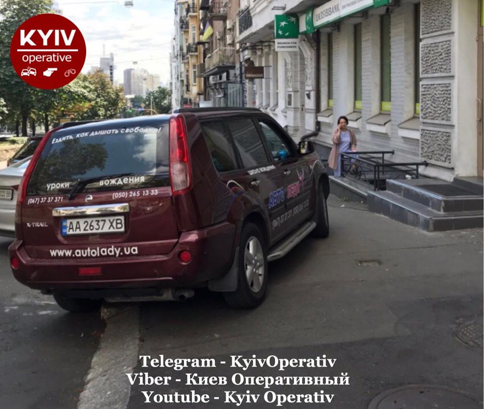 В Киеве инструктор автошколы припарковался прямо на тротуаре.