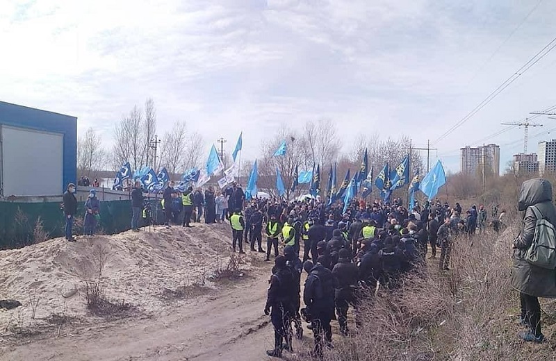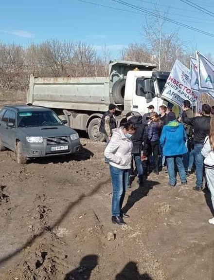 На странице Национального корпуса мероприятие на Осокорках Центральных называют "экологической толокой", мол, пришли собирать мусор. Когда активисты оставили потенциальную строительную площадку, к Осокоркам Центральным потянулись грузовики. На стройплощадке копают песок, который был оставлен для строительства.