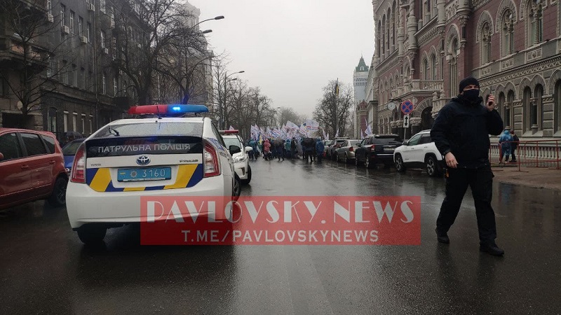 Протестующие требовали, чтоб к ним вышел глава Национального банка Кирилл Шевченко. К ним вышел его представитель, который зарегистрировал обращение.