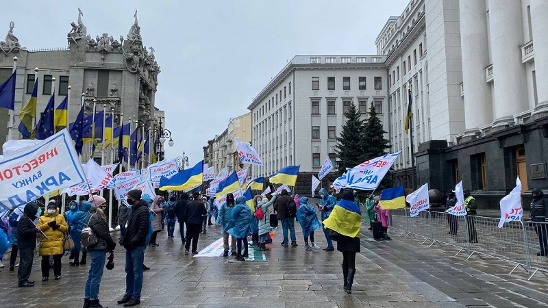 Акция протеста началась в 09:30 возле здания Кабмина. Митингующие были под зданием Кабинета министров и Офисом президента Украины и требовали, чтобы к ним вышел президент Владимир Зеленский.