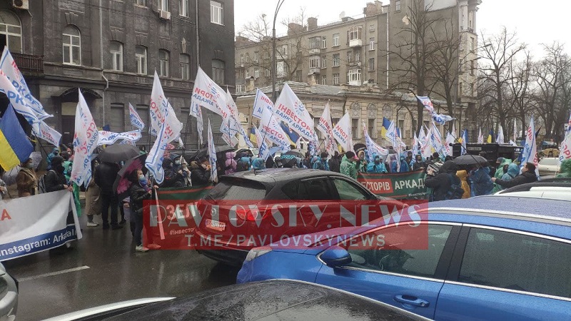 "Инвесторы банка Аркада перекрыли улицу Институтскую напротив Нацбанка и требуют помочь им достроить ЖК, выделив на ипотечные кредиты для населения 3,5 млрд грн", - говорится в сообщении.