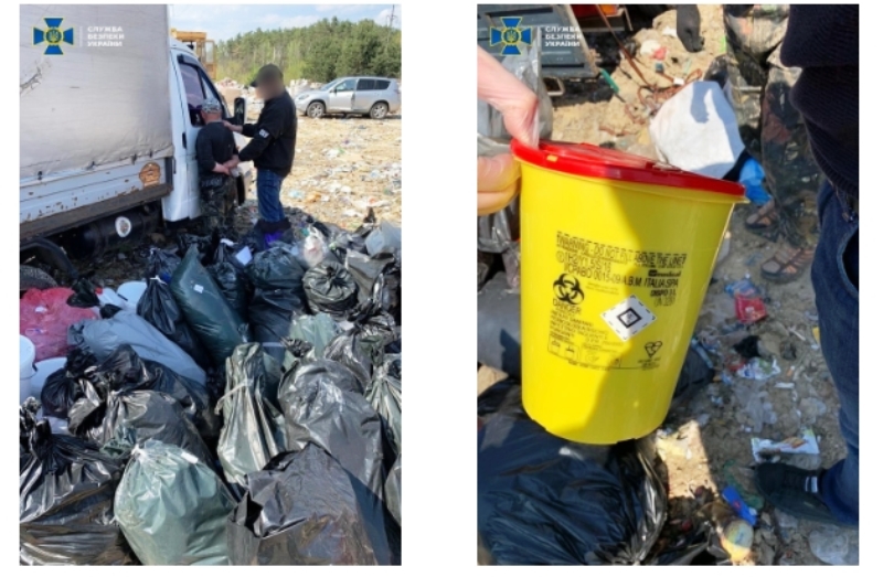 Сотрудники Службы безопасности Украины в Киевской области выявили, что коммерческая структура вывозила из больниц опасные отходы и сбрасывала их на свалке.