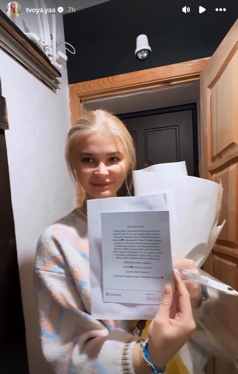 Владислав передал Марьяне букет цветов и письмо, текст которого она зачитала во сториз.