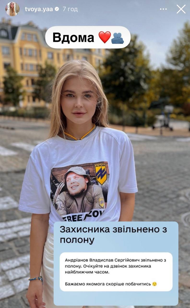 В сториз на своей странице в Инстраграм Марьяна поделились кадрами с освобожденным возлюбленным.