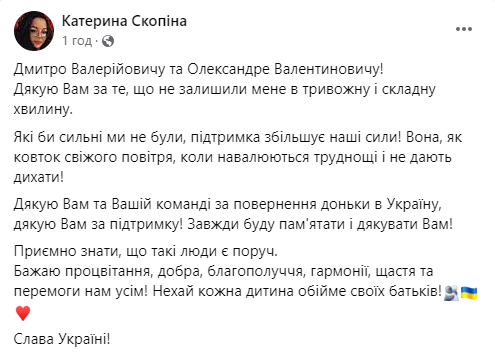"Сейчас семья в полном составе находится в Украине и счастлива, что удалось воссоединиться", - рассказал Дмитрий Лубинец.