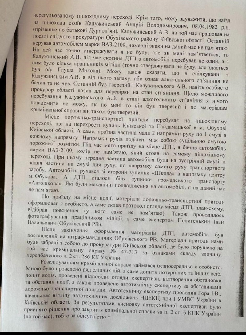 В 2005 году нынешний руководитель детективов НАБУ, а тогда прокурор Обуховской прокуратуры Андрей Калужинский насмерть сбил пешехода на перекрестке. Журналисты выяснили, почему было закрыто это дело и какие манипуляции происходили с экспертизой.
