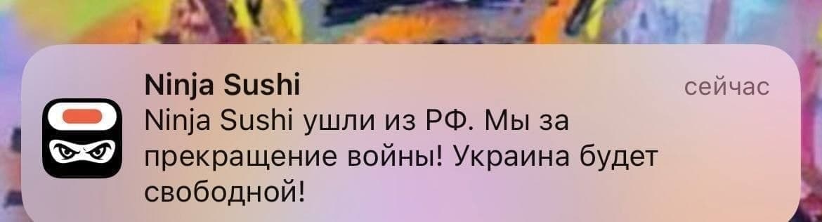 "Ninja Sushi ушли из РФ. Мы за прекращение войны! Украина будет свободной!", - сказано в них.