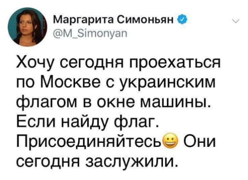 "Что касается пропагандистов, то Симоньян как человек неглупый (хотя тварь еще та) должен понимать, что пусть он сейчас перейдет на украинский и будет публиковать украинский гимн или фото с флагом Украины, это ей все же не поможет. Это все из-за полной растерянности после Балаклеи, Купянская и Изюма. Хотя еще неделю назад они реально верили, что в Украине они смогут добиться какого-то успеха", - сказал Ауслендер.