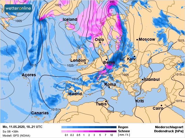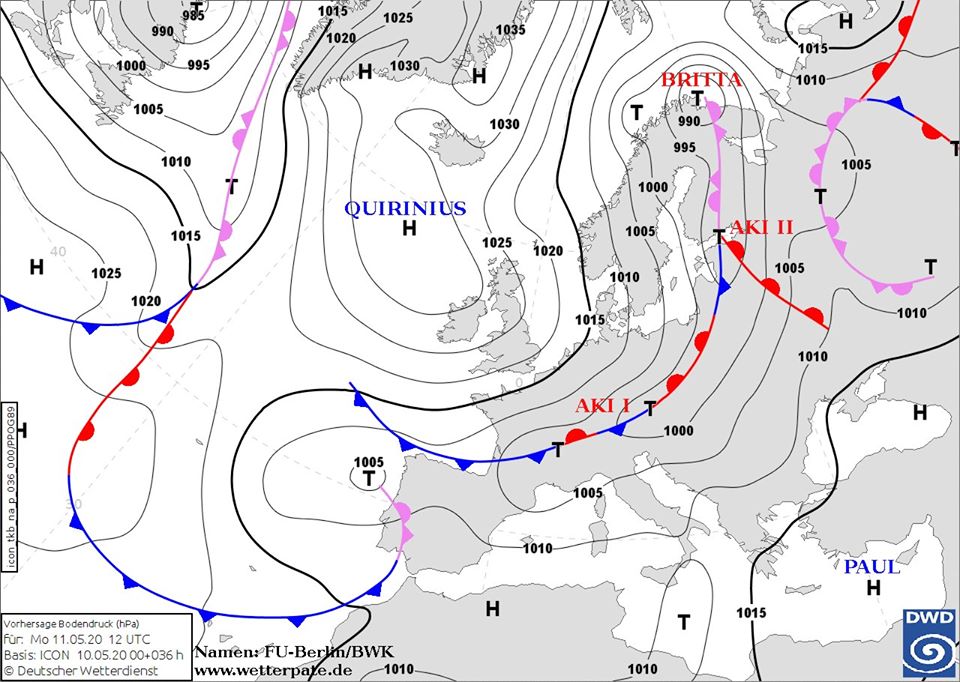 12 мая в Украину придет холодный атмосферный фронт который принесет дожди (на Западе иногда даже мокрый снег), похолодание, штормовой ветер.