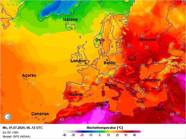 В понедельник, 1 июля, максимальная температура воздуха в Украине достигнет +30+35 градусов, на востоке и юго-востоке кое-где до +34+37 градусов.
