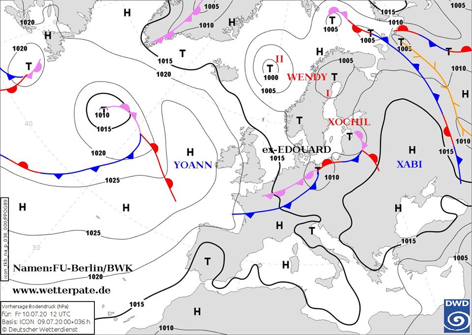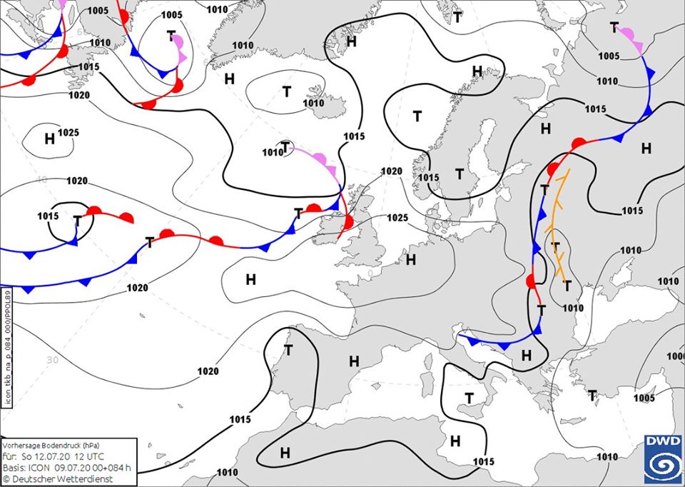 В воскресенье, на Петра и Павла, в западных областях, из-за прихода активных атмосферных фронтов с запада Европы, ощутимо похолодает и пройдут грозовые ливни. На остальной территории преимущественно сухо, разве что в Крыму и в Николаевской области местами пройдут грозовые дожди.