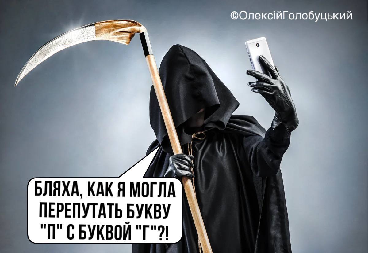 "Как я могла перепутать букву П с буквой Г", - сокрушается смерть на другой картинке.