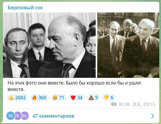 "Умер президент, который любил СССР. Но не тот, что надо", - подписан "гибрид" Путина и Горбачева.