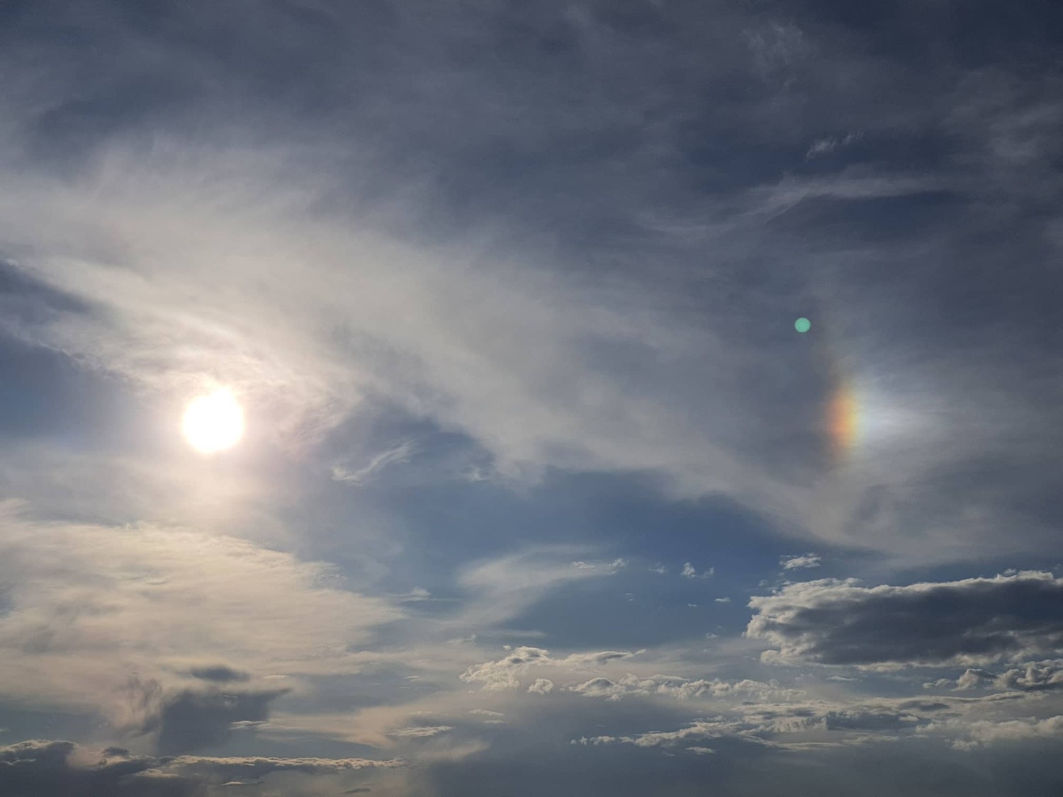 Ученые называют такое явление "гало" (в переводе с греческого - "сияние", "нимб"). Это оптическое явление в атмосфере, которое возникает в результате преломления и отражения света. Чаще оно наблюдается в перисто-слоистых облаках, реже - при других условиях.