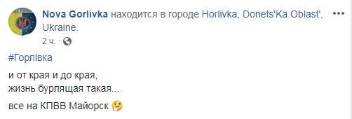 "Горловка. И от края и до края, жизнь бурлящая такая... Все на КПВВ Майорск?" - сказано в сообщении.
