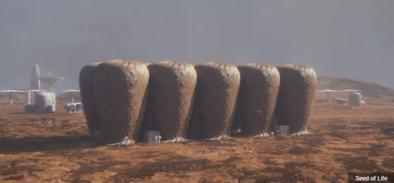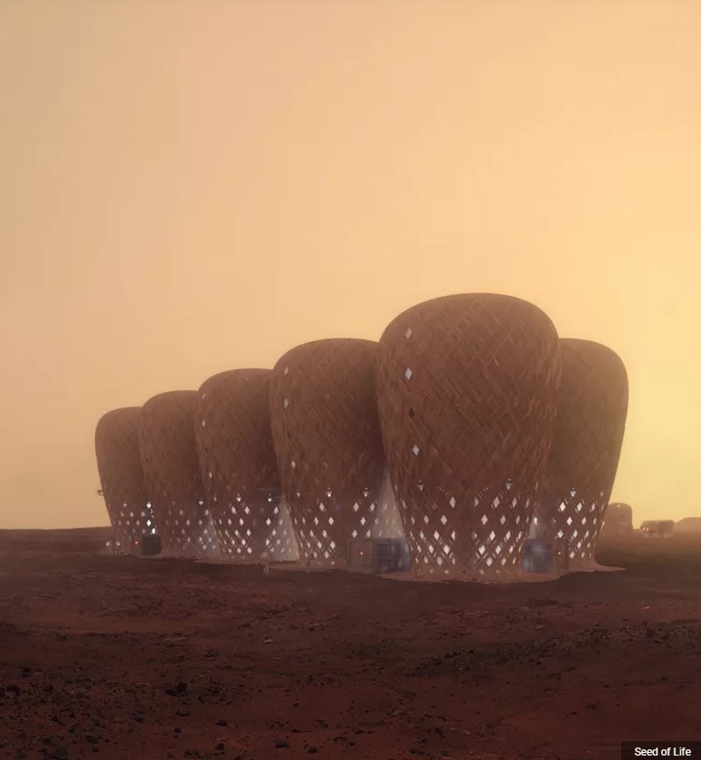 Если отойти от вариантов с 3D-печатью домой, то стоит выделить проект малазийских дизайнеров Seed of Life. Авторы концепта Варит Заки и Амир Амзар планируют использовать бамбук, выращенный на Марсе, чтобы построить жилье для первых колонизаторов. Суть проекта заключается в возведении серии овальных структур, сотканных из бамбука автономными роботами. Создатели утверждают, что такой принцип не требует ни строительных материалов, ни дорогостоящего оборудования для 3D-печати.