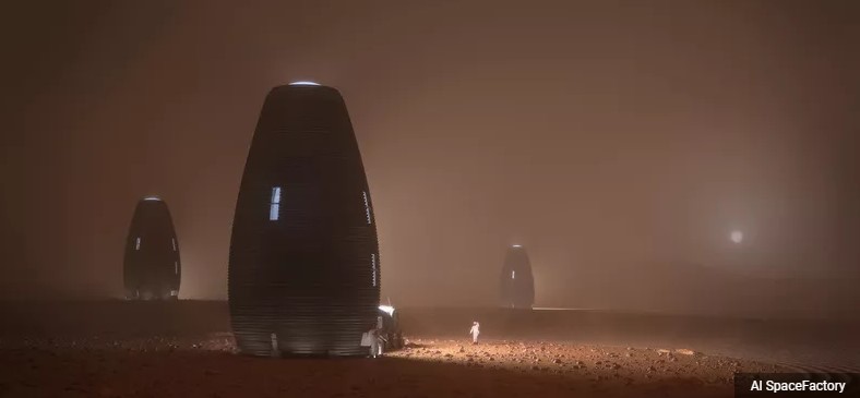 Еще один проект, который уже отметило NASA – концепт 3D-домов от архитектурного бюро AI SpaceFactory. С этим проектом компания вошла в число финалистов конкурса от NASA и стала известна на весь мир своими запоминающимися марсианскими "ульями". Поскольку проект изначально предполагает использование только элементов, которые есть на Марсе, это уменьшает его зависимость от строительных материалов с Земли, а значит и сокращает стоимость, а главное время постройки.