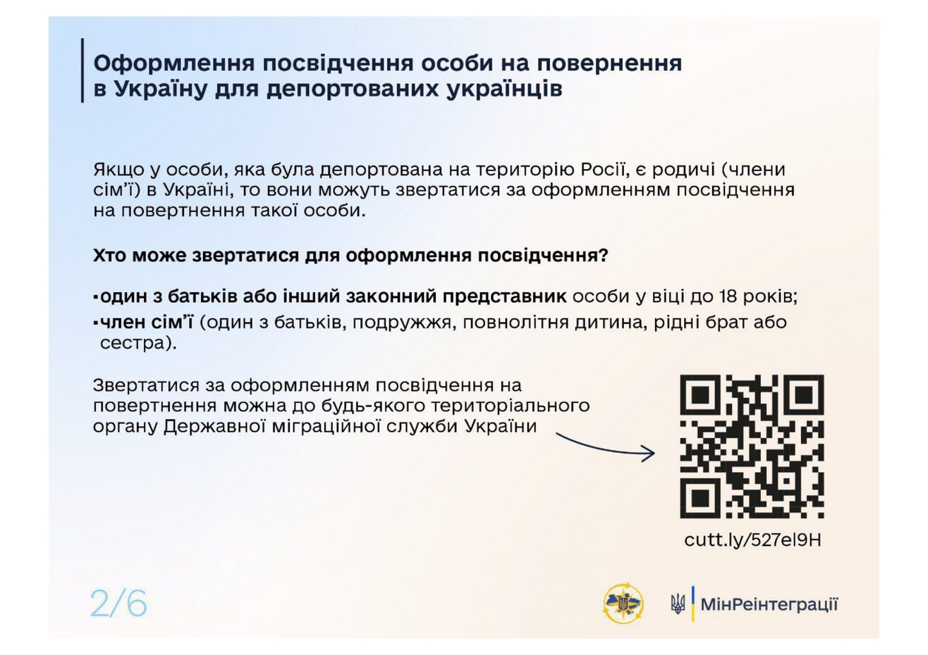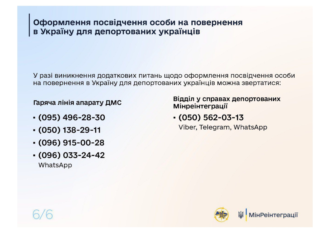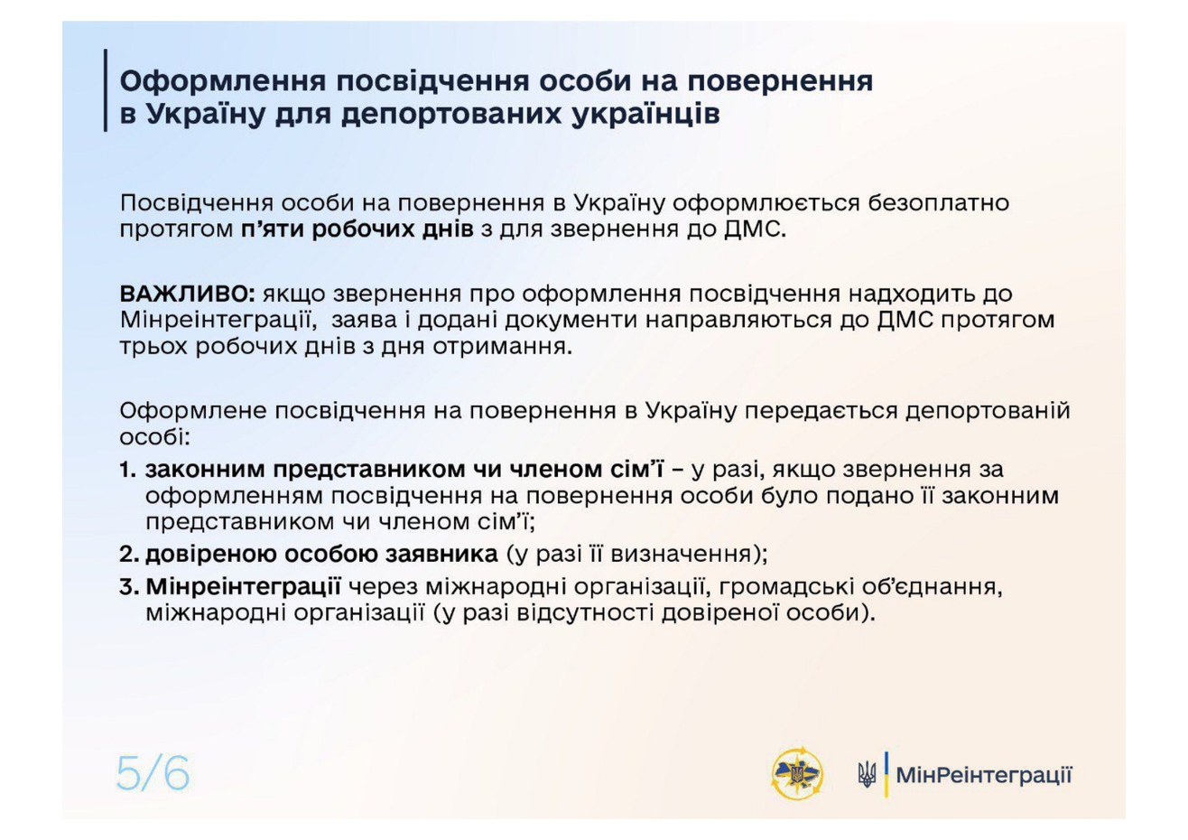 В случаях, если депортированные люди находятся на территории России без документов, удостоверяющих личность, они имеют право оформить удостоверение на возвращение в Украину.