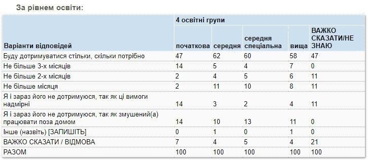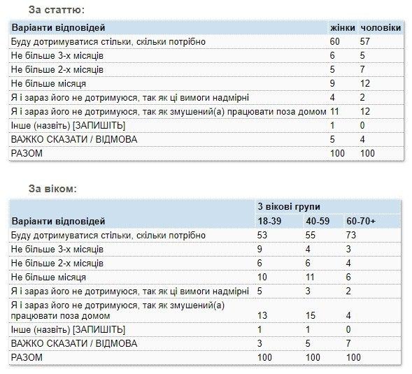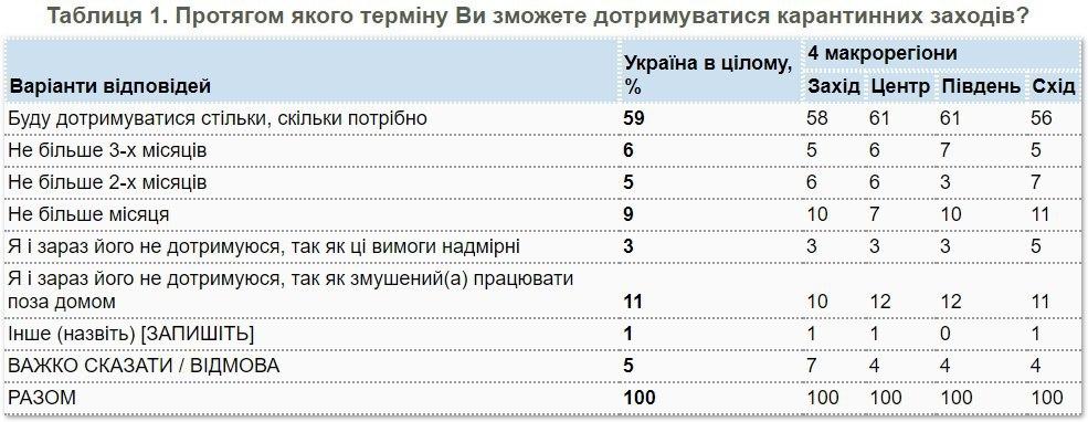 79% украинцев готовы к продлению карантина на 1 месяц и более, в том числе 70% - на два месяца и более, а 59% опрошенных согласны соблюдать карантин столько, сколько нужно.